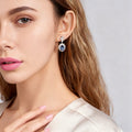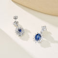 Une paire de boucles d'oreilles pendantes raffinées, ornées de saphirs de synthèse de 7 x 9 mm aux couleurs éclatantes, élégamment sertis d'un halo de moissanite brillante. Confectionnées en argent sterling 925 rhodié, elles offrent un éclat exceptionnel, une profondeur de couleur intense et une sophistication intemporelle. Légères et pourtant remarquables, elles sont parfaites pour les soirées, les mariages, les événements formels et les occasions spéciales.